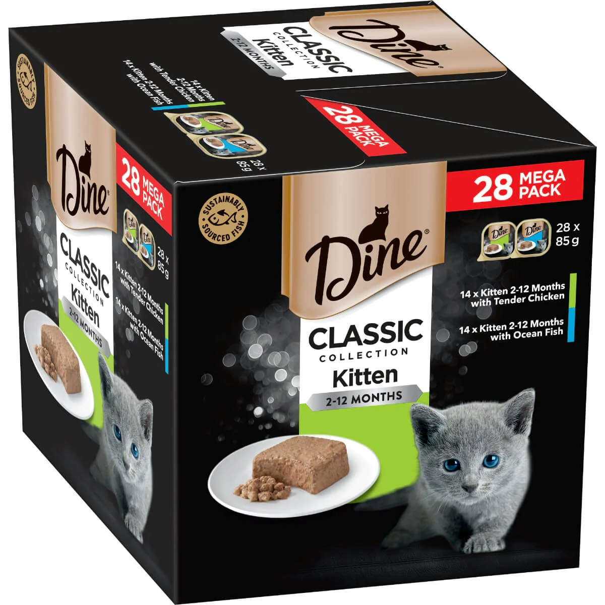 Dine Classic Collection Kitten with Tender Chicken & with Ocean Fish Wet Cat Food 28pk