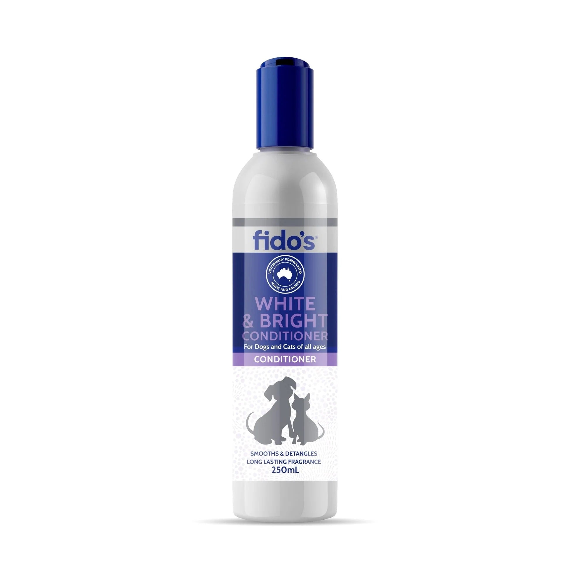 Fido's White and Bright Conditioner 250ml is a premium pet care product designed for gentle, effective cleaning and conditioning. Ideal for regular grooming routines, this product promotes a healthy, shiny coat while ensuring comfort for your pet.
