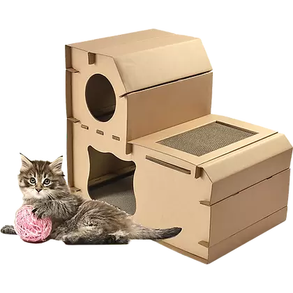 Multiple scratchboards provide her with a place to sharpen her claws. You'll love its lightweight construction , you can move it all over the house as you see fit. If you have multiple cats , or even smaller dogs , this cardboard house can house them all. Get yours today!