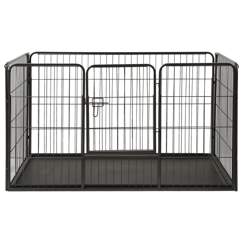 Our versatile playpen is ideal for your puppies to play, exercise, train, or simply for keeping them safe. It will be the perfect play paradise for your furry friends! This dog playpen can be easily set up or taken down. It features a hinged door with security latches for easy access. This durable and weather-resistant playpen is made of rustproof powder-coated steel, making it suitable for outdoor and indoor use. A plastic bottom tray is also included in the delivery.