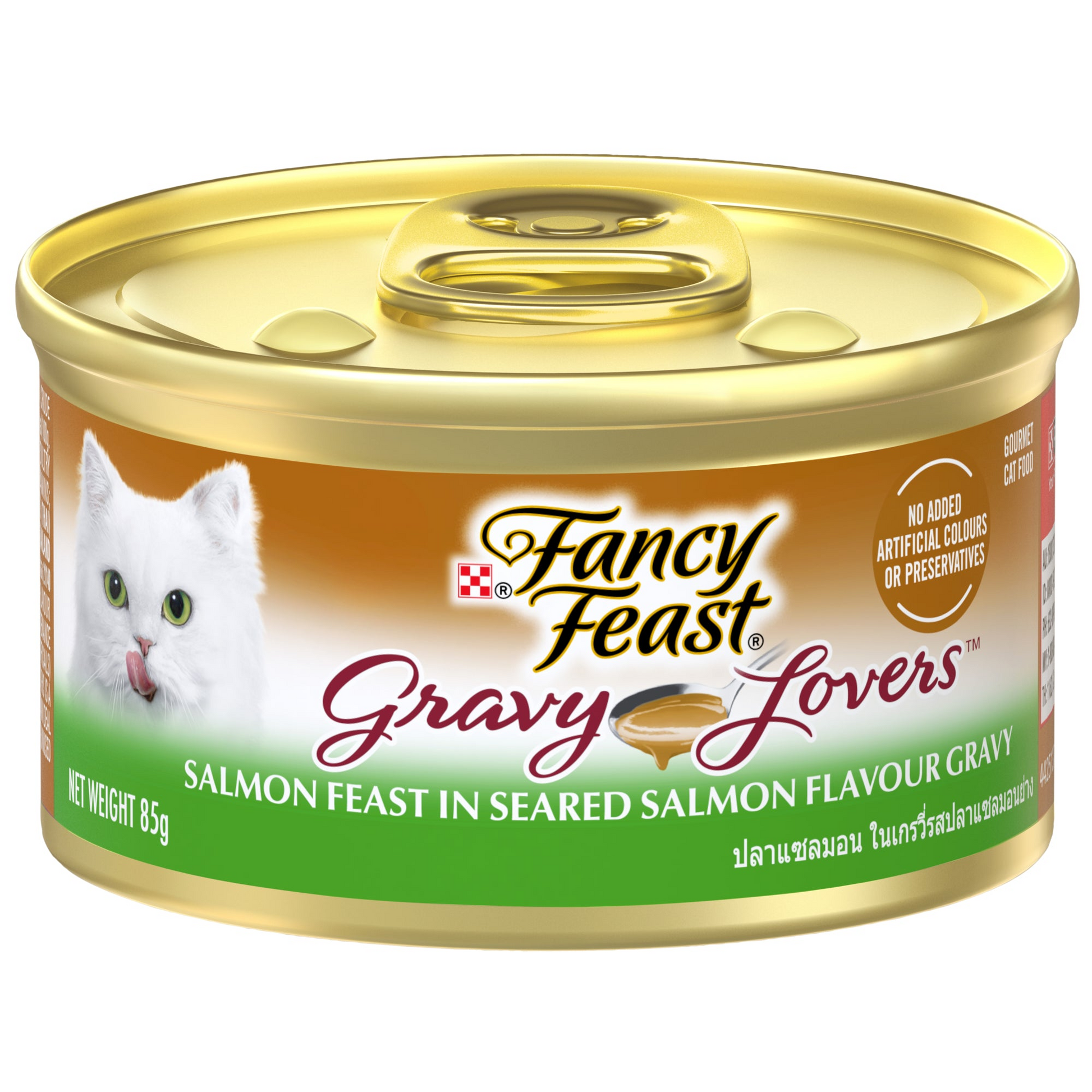 Let your cat enjoy a true gourmet feast with Purina Fancy Feast Gravy Lovers Salmon Feast in Seared Salmon Flavoured Gravy wet cat food.