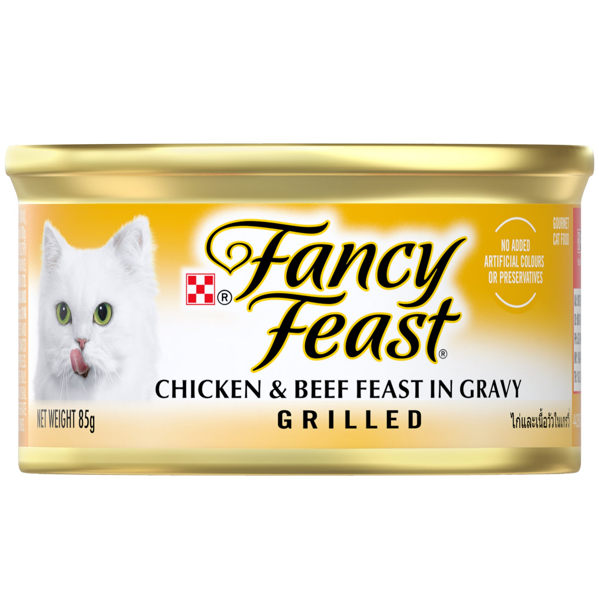 Make mealtime a special affair when you serve Purina Fancy Feast Grilled Chicken & Beef Feast in Gravy wet cat food.