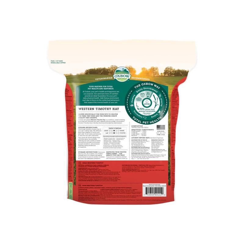 Oxbow Western Timothy Small 425g is classic, sweet-smelling timothy grass hay - the gold-standard fibre source for small herbivores. Rotate with orchard grass or oat hay to promote natural foraging and better hay intake. • High fibre, low protein & calcium • Long-strand hay supports dental wear and digestive health • Hand-selected for consistent quality • Offer unlimited fresh hay daily