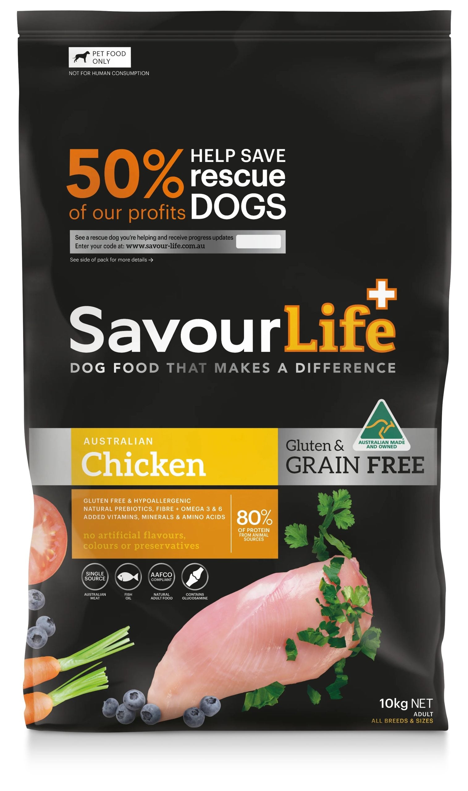 SavourLife's Healthsource Superfood Grain-Free Chicken is an all-natural, holistic, Australian-made, grain-free food. contains natural superfood like sweet potato, kelp and blueberries. bursting with single-source Australian meat plus vitamins, minerals, natural prebiotics and amino acids. contains no artificial flavours, colours or preservatives.SavourLife is a family-owned and operated Australian company, they produce Australian-made dog food and donate 50% of their profits to pet rescue organisations; helping them save and re-home abandoned dogs.