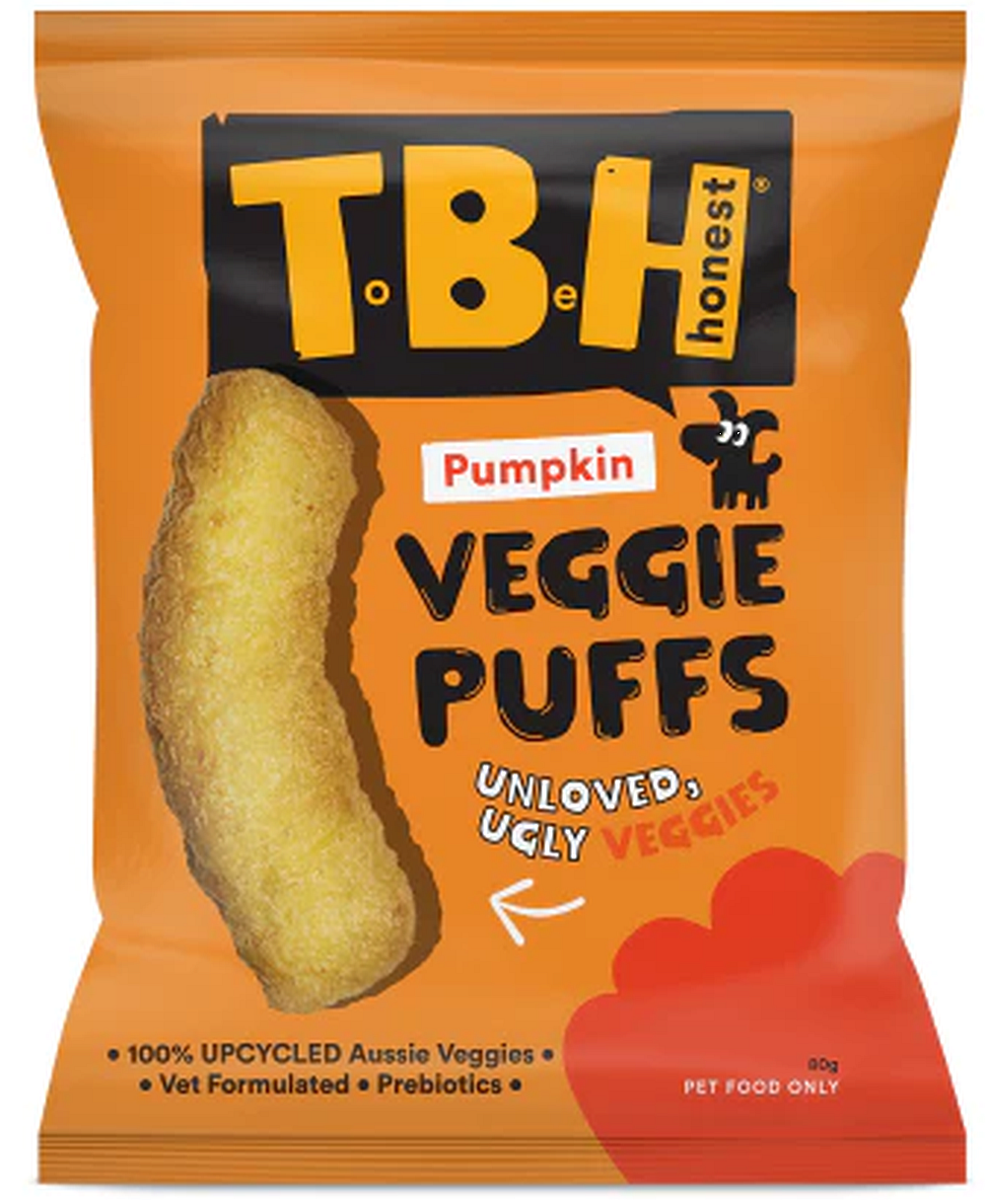Meet TBH Veggie Puff Dog Treats! It stands for To Be Honest - and TBH, these are dog treats with a difference. Actually, theyre dog treats with a lot of differences. Like the way theyre made right here in Australia, from human-grade, locally sourced ingredients.