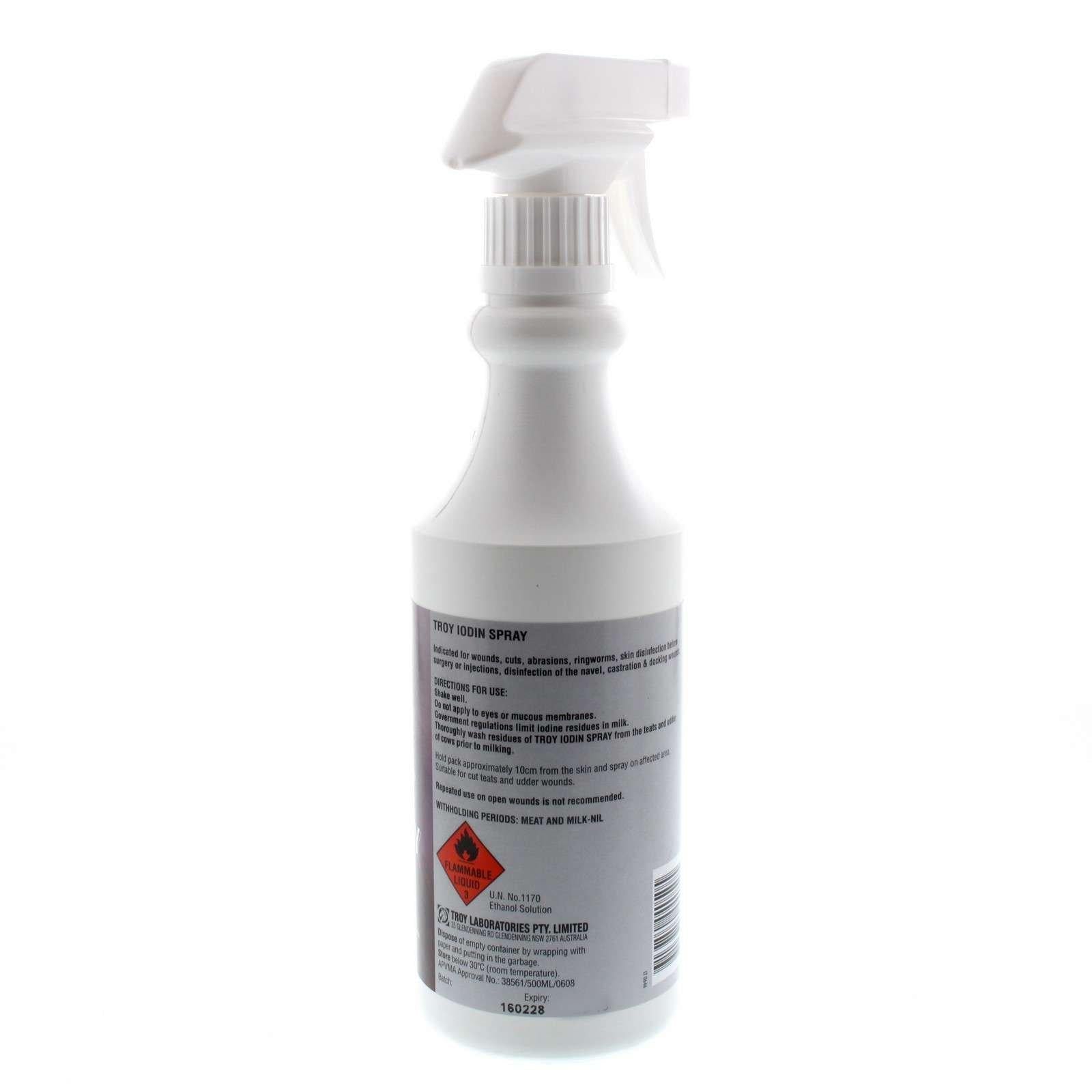 Troy Iodin Antiseptic and Wound Spray Anti Bacteria Anti Fungi 500ml - quality equine care product. Use per label directions; always provide fresh water and quality forage. 500ml.