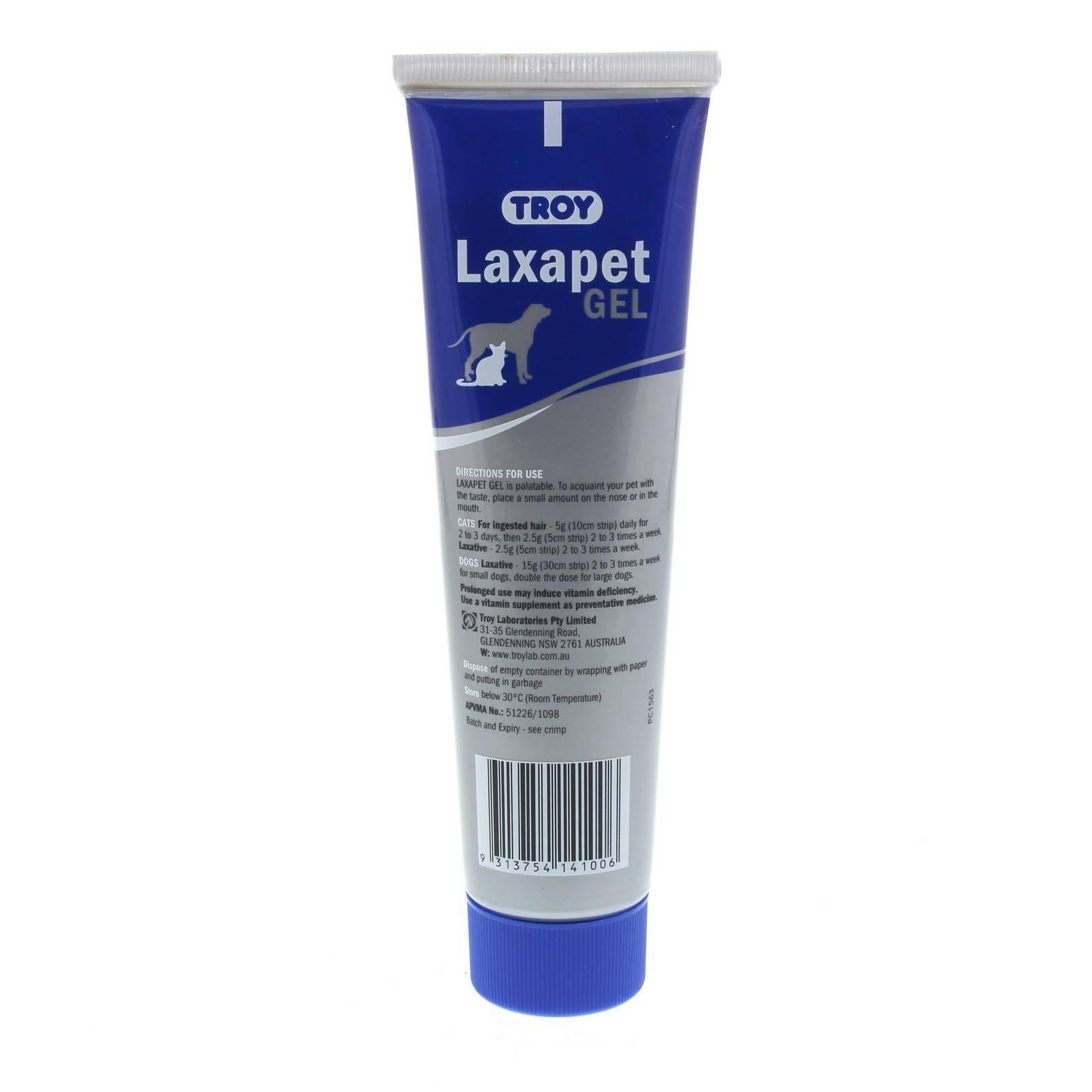 Troy Laxapet Edible Laxative Gel for Digestive Relief Cat Dog 100g - quality equine care product. Use per label directions; always provide fresh water and quality forage. 100g.