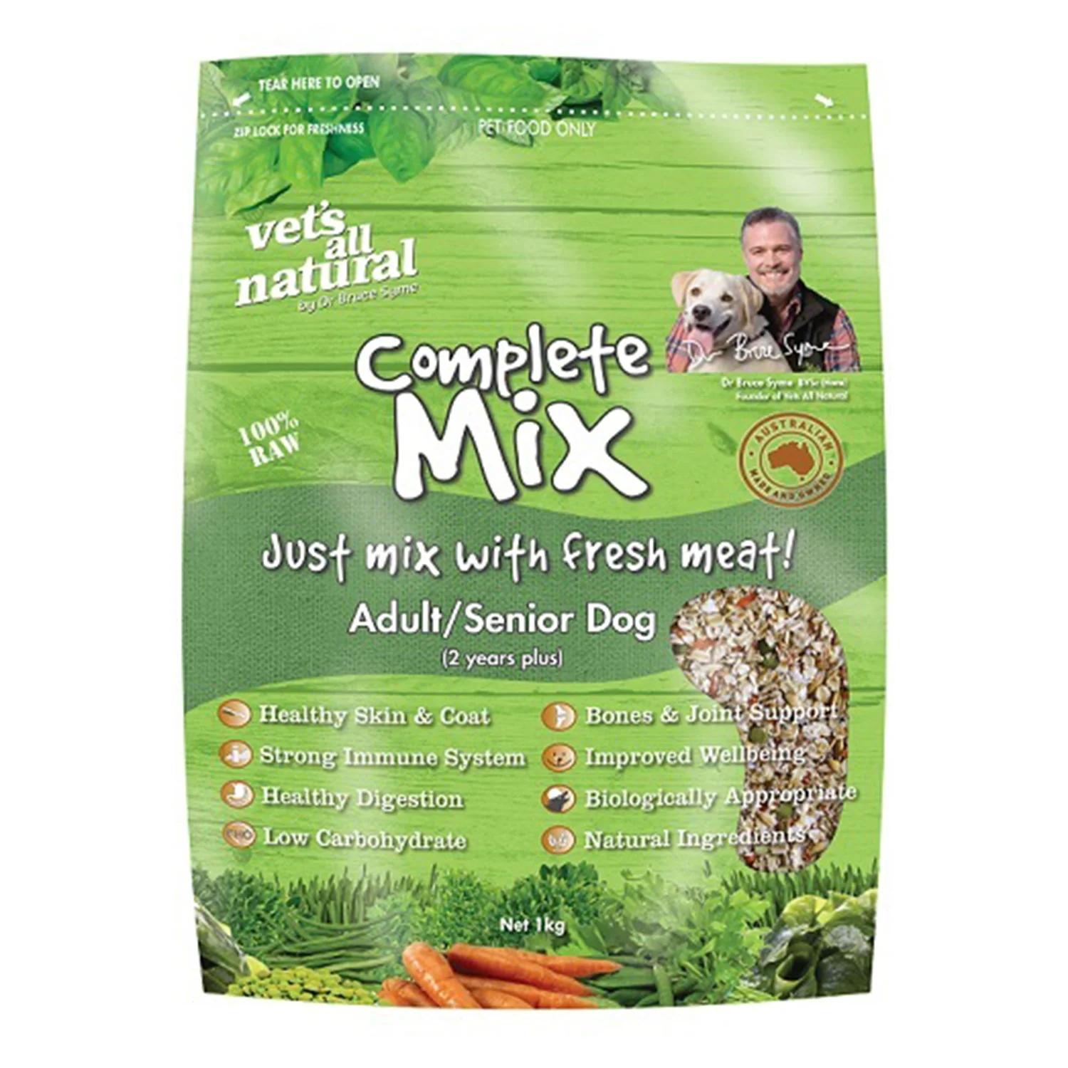 Vets all Natural Complete Mix Adult and Senior Dog is a completely raw diet designed to provide a complete balanced diet, with a high vegetable and roughage content.