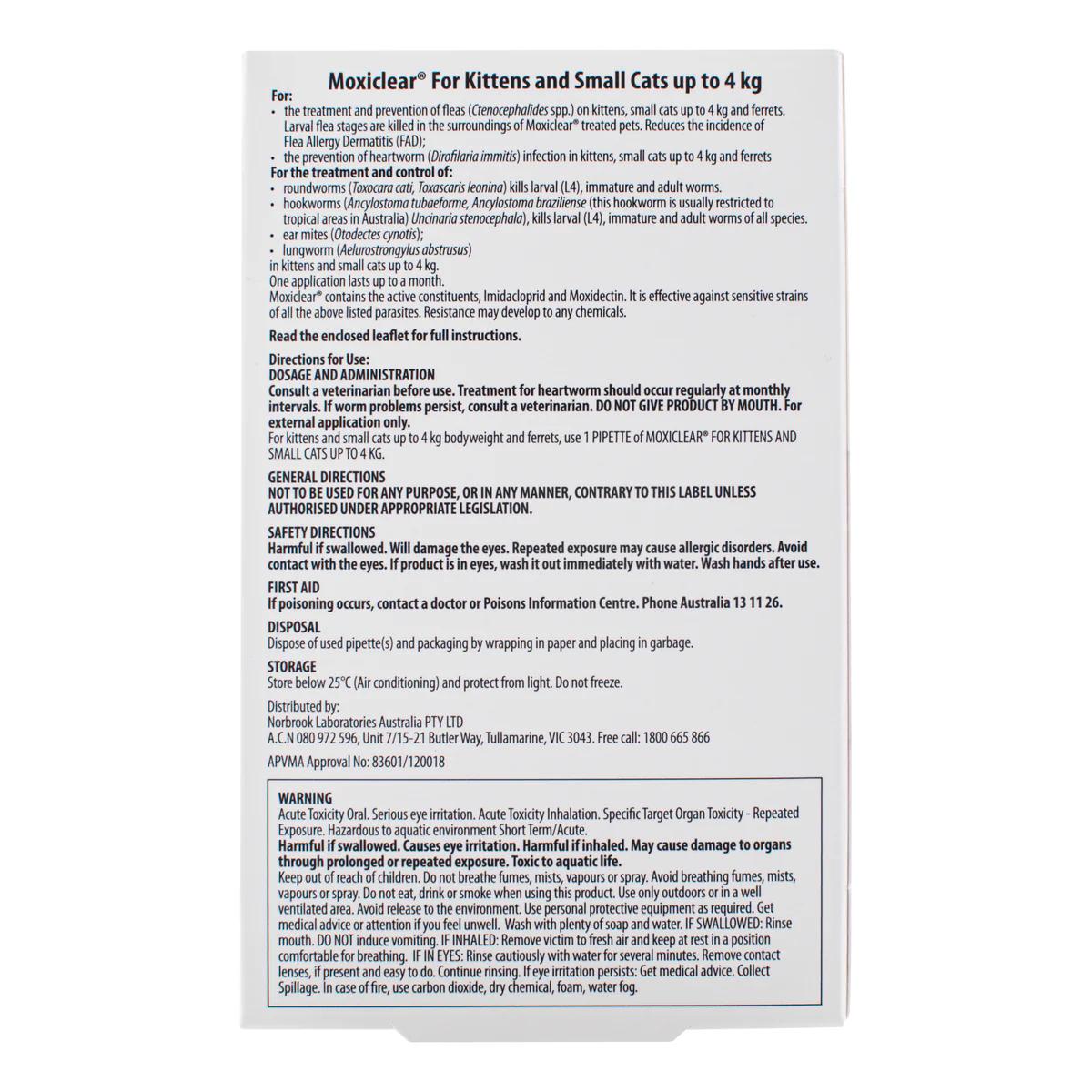 MOXICLEAR FOR KITTENS AND SMALL CATS UP TO 4KG 6 PACK - premium pet product from trusted suppliers. For more information feel free to contact our friendly team.