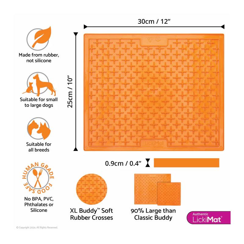 LickiMat® is a vet-developed enrichment mat from Australia, designed to help dogs and cats feel calmer, eat more slowly and enjoy their food in a healthier, more engaging way. The textured surface encourages natural licking behaviour, turning treats and meals into a soothing activity that can help relieve boredom and support relaxation during everyday downtime or stressful moments such as alone time, grooming, vet visits, thunderstorms or fireworks.
