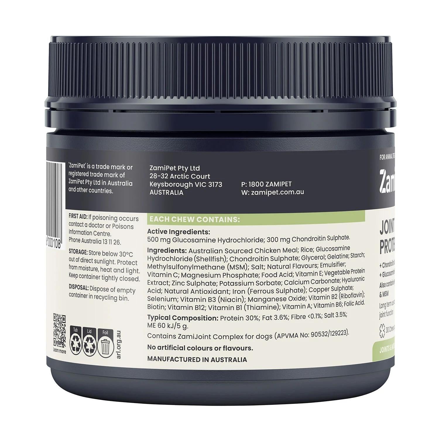 Zami Pet Joint Protect is a great tasting, breakable, chewable dog joint supplement containing Chondroitin and Glucosamine plus Hyaluronic Acid and MSM, to support joint function in dogs.